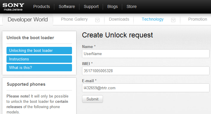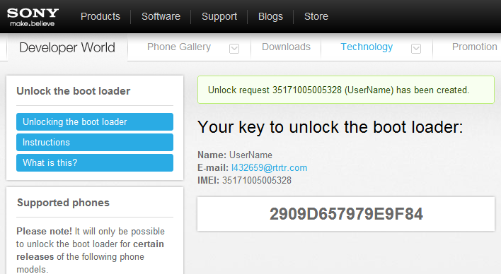 Наиболее простой и надёжный способ получения root-доступа для Sony Xperia S — это специально подготовленная прошивка, в которой уже есть такая возможность и нет лишнего ПО. Для установки придётся разблокировать загрузчик, благо для этого есть официальные методы. Следуя инструкции, перед разблокировкой необходимо убедиться в том, что она вообще возможна. Наберите на телефонной клавиатуре код *#*#7378423#*#* (слово service) для открытия сервисного меню. Здесь надо перейти к разделу Service info → Configuration → Rooting Status и посмотреть параметр Bootloader unlock allowed. Если напротив него стоит Yes, то записываем IMEI и переходим к следующему этапу. IMEI также можно узнать, набрав *#06#.