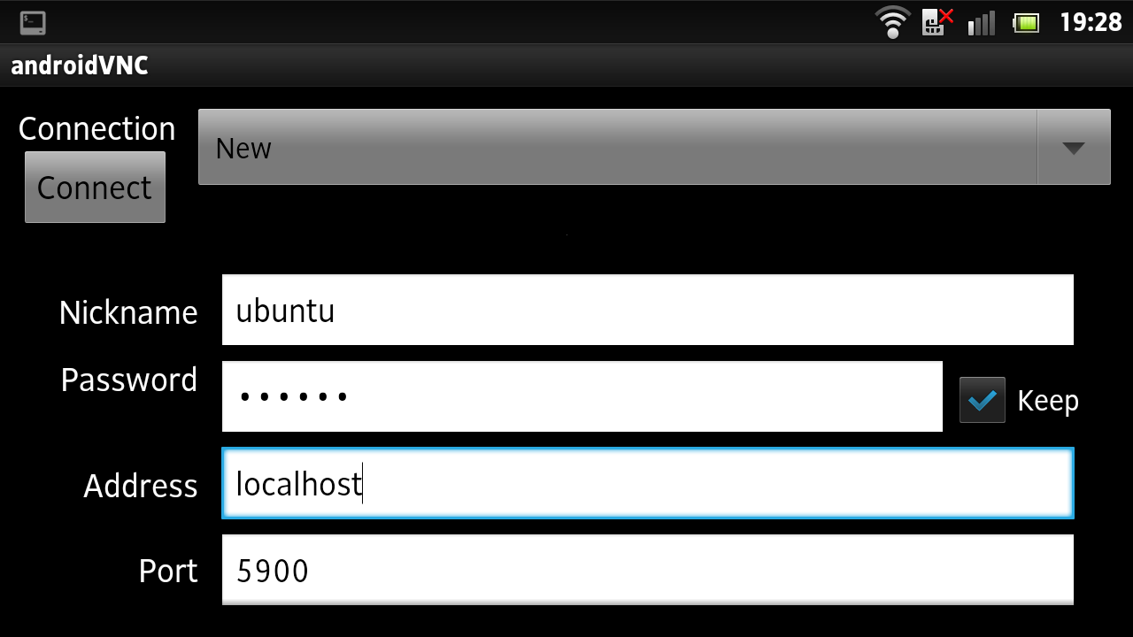 Для запуска Ubuntu надо перейти в раздел Launch, выбрать в списке наш дистрибутив и нажать Start. Откроется окно терминала. При первом запуске образ системы проходит проверку целостности, так что придётся подождать несколько минут, пока она завершится. Затем надо дважды ввести пароль пользователя, согласиться на запуск VNC-сервера (y) и, если хотите, SSH-сервера. Осталось указать разрешение экрана и сохранить по желанию указанные настройки как дефолтные. Теперь можно подключаться с помощью VNC-клиента к запущенной ОС локально или же по Wi-Fi с другой машины. Порт 5900, адрес localhost или IP-адрес смартфона, логин и пароль совпадают — ubuntu. В настройках цвета лучше выставить 24bpp.